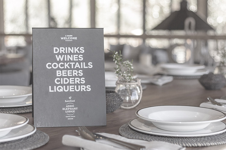 Die Barefoot Addo Elephant Lodge freut sich ihren Gästen den neu erbauten Entertainmentbereich zu präsentieren. Die strohgedeckte Lodge mit Natursteinwänden bietet jeglichen Komfort einer Luxusunterkunft und ist ein ungestörter Rückzugsort, wo Körper und Seele in Einklang mit der Natur zur Ruhe kommen. Lounge und Essbereich blicken auf das Wasserloch, zu dem die Affen zum Spielen kommen und wo unsere Elefanten ihren Durst löschen. Die Lodge ist der perfekte Ort, um den eindrucksvollen Sonnenuntergang zu erleben, regionale und saisonale Kulinarik zu genießen und sich ganz auf den afrikanischen „Safari“-Lebensstil einzulassen.